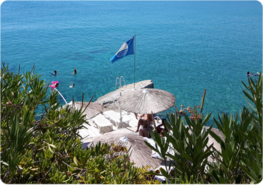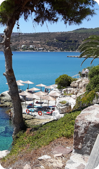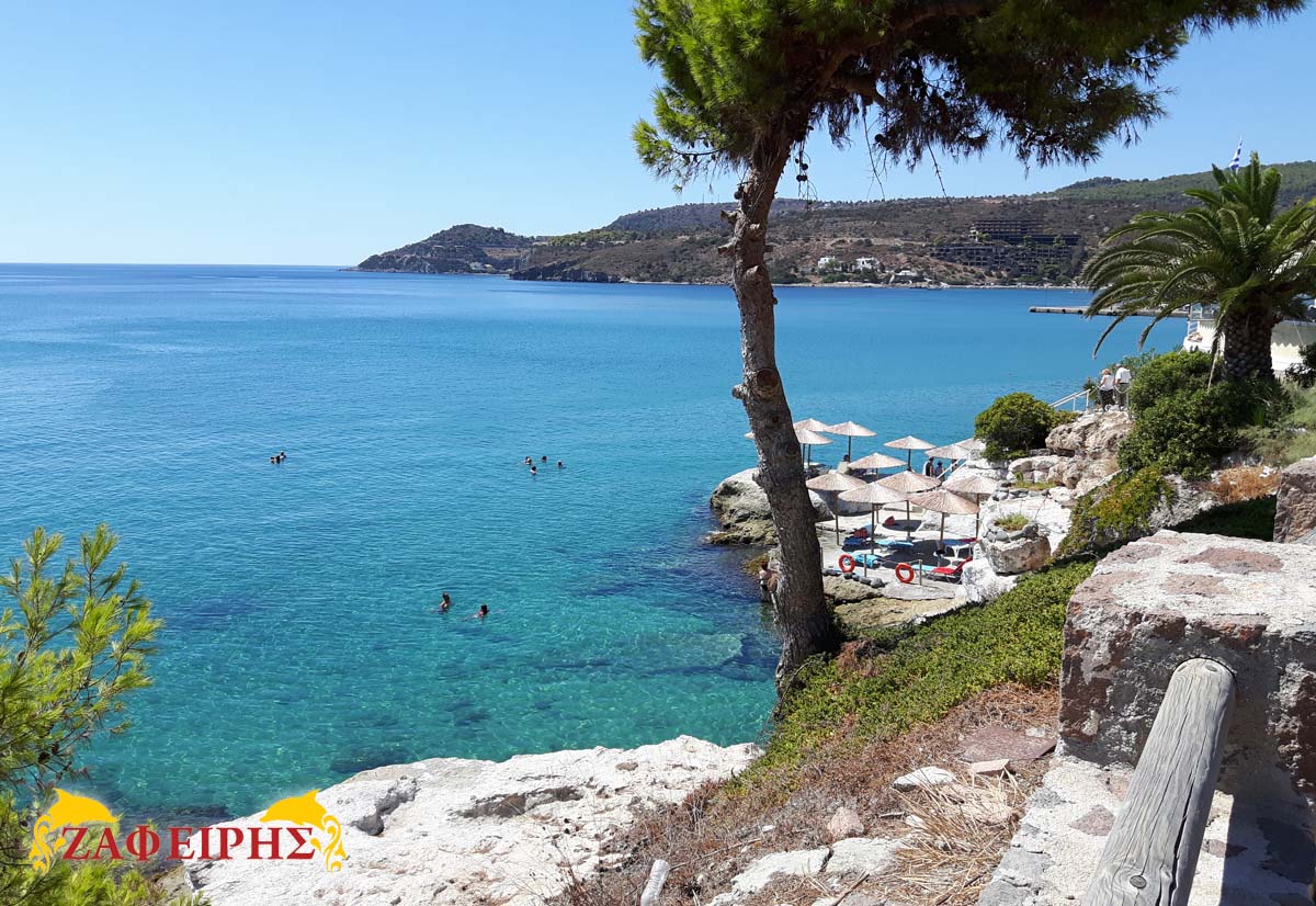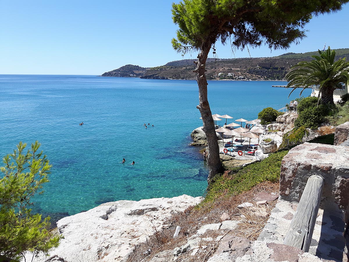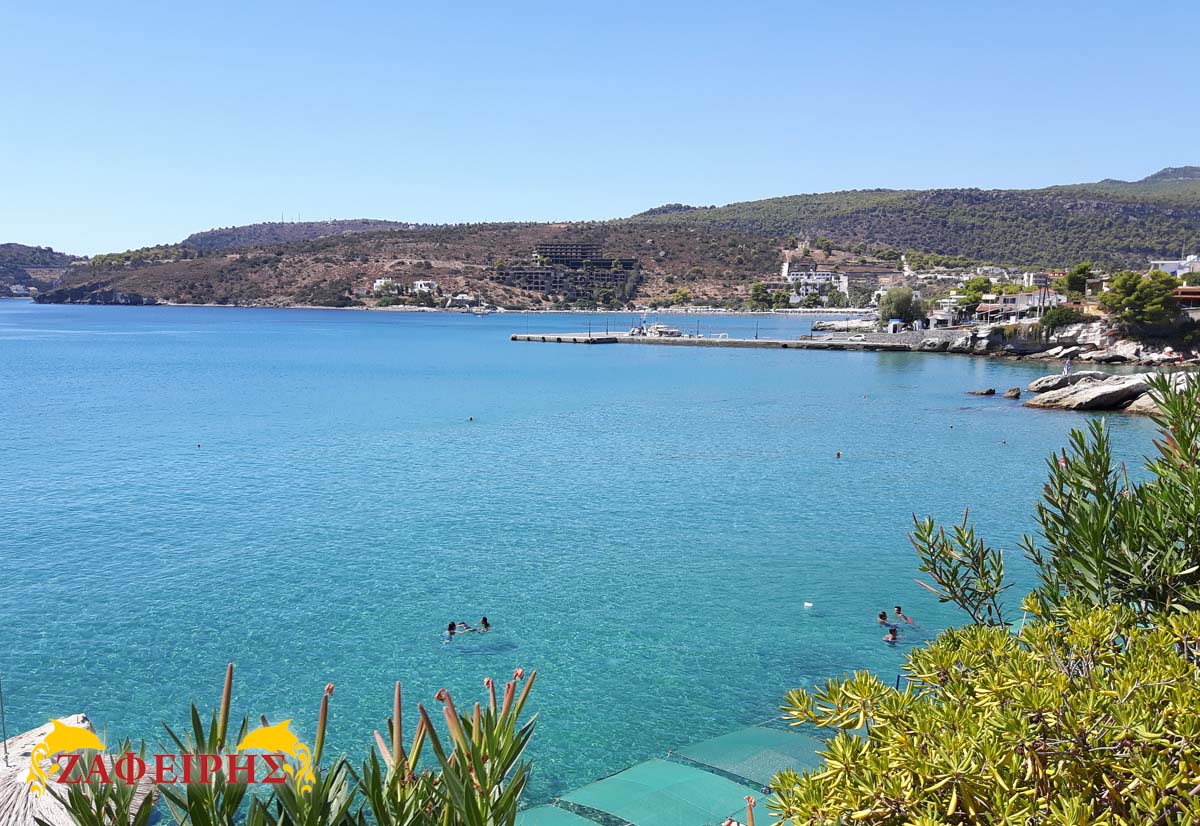 100 μ. από τα δωμάτια βρίσκονται τέσσερις όμορφοι κολπίσκοι που μπορείτε να απολαύσετε το μπάνιο σας στα πεντακάθαρα και χαρακτηρισμένα με την γαλάζια σημαία νερά της Αγίας Μαρίνας.